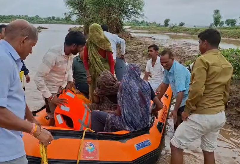 श्योपुर में झमाझम बारिश के कारण कूनो नदी में भारी उफान है. नदी पर बना पुल टूट जाने से वीरपुर तहसील के दिमर्छा गांव का संपर्क पूरी तरह कट गया है. गांव में फंसे बीमार मरीजों और प्रसूताओं को बचाने के लिए रेस्क्यू ऑपरेशन चलाया जा रहा है. एसडीआरएफ की टीम ने कई लोगों को सुरक्षित बाहर निकाला है. नदी अभी भी उफान पर है, जिससे आसपास के इलाकों में खतरा बढ़ गया है. स्थानीय प्रशासन ने राहत कार्य तेज कर दिए हैं और लोगों को ऊंचे स्थानों पर जाने की सलाह दी है.