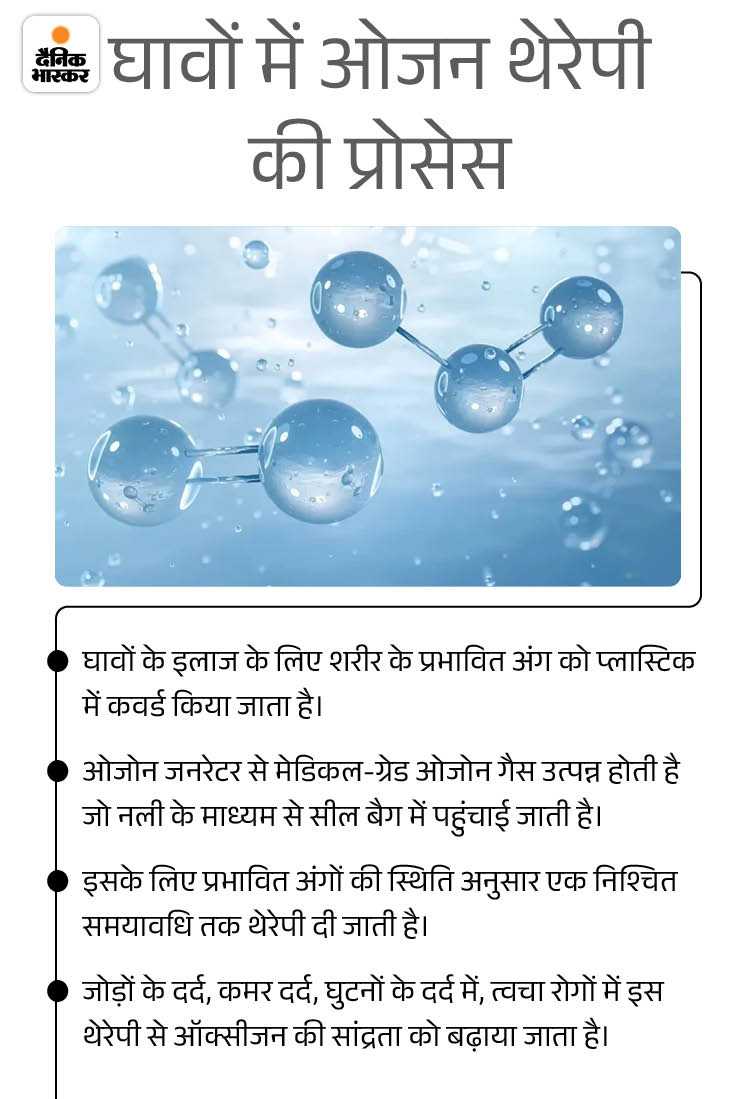 इंदौर के अष्टांग आयुर्वेद हॉस्पिटल के सर्जरी विभाग में ओजोन थेरेपी शुरू हो चुकी है। 13 अगस्त से शुरू हुई थेरेपी नि:शुल्क की जाती है। अभी 15 मरीजों को इससे आराम मिला है।