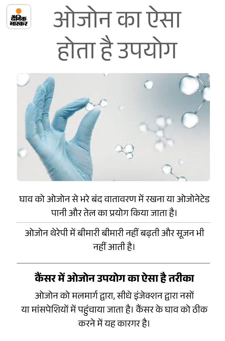 अब कैंसर जैसी गंभीर बीमारियों से लड़ने के लिए ओजोन थैरेपी का सहारा लिया जा रहा है। यह ओजोन थैरेपी शरीर में ऑक्सीजन की मात्रा बढ़ाकर कैंसर व अन्य बीमारियों को कम करती है।