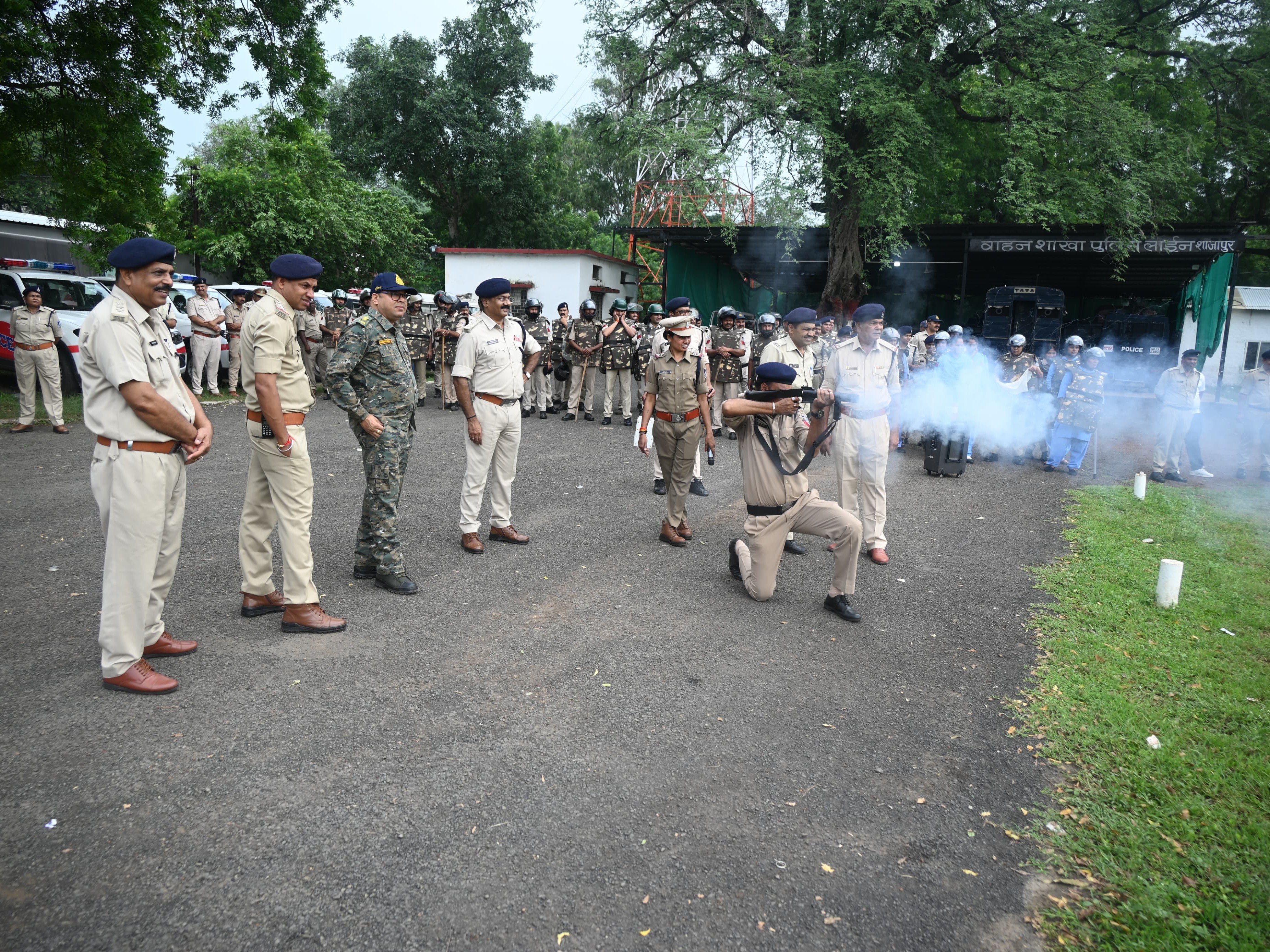 इनमें अश्रु गैस पार्टी, कैन पार्टी, लाठी पार्टी, राइफल पार्टी और रिजर्व पार्टी शामिल थीं। परेड के बाद पुलिस कर्मियों को अश्रु गैस सेल, टियर गैस सेल और हैंड ग्रेनेड के संचालन का प्रशिक्षण दिया गया। पुलिस बल ने संयोजन और त्वरित प्रतिक्रिया का प्रदर्शन किया।