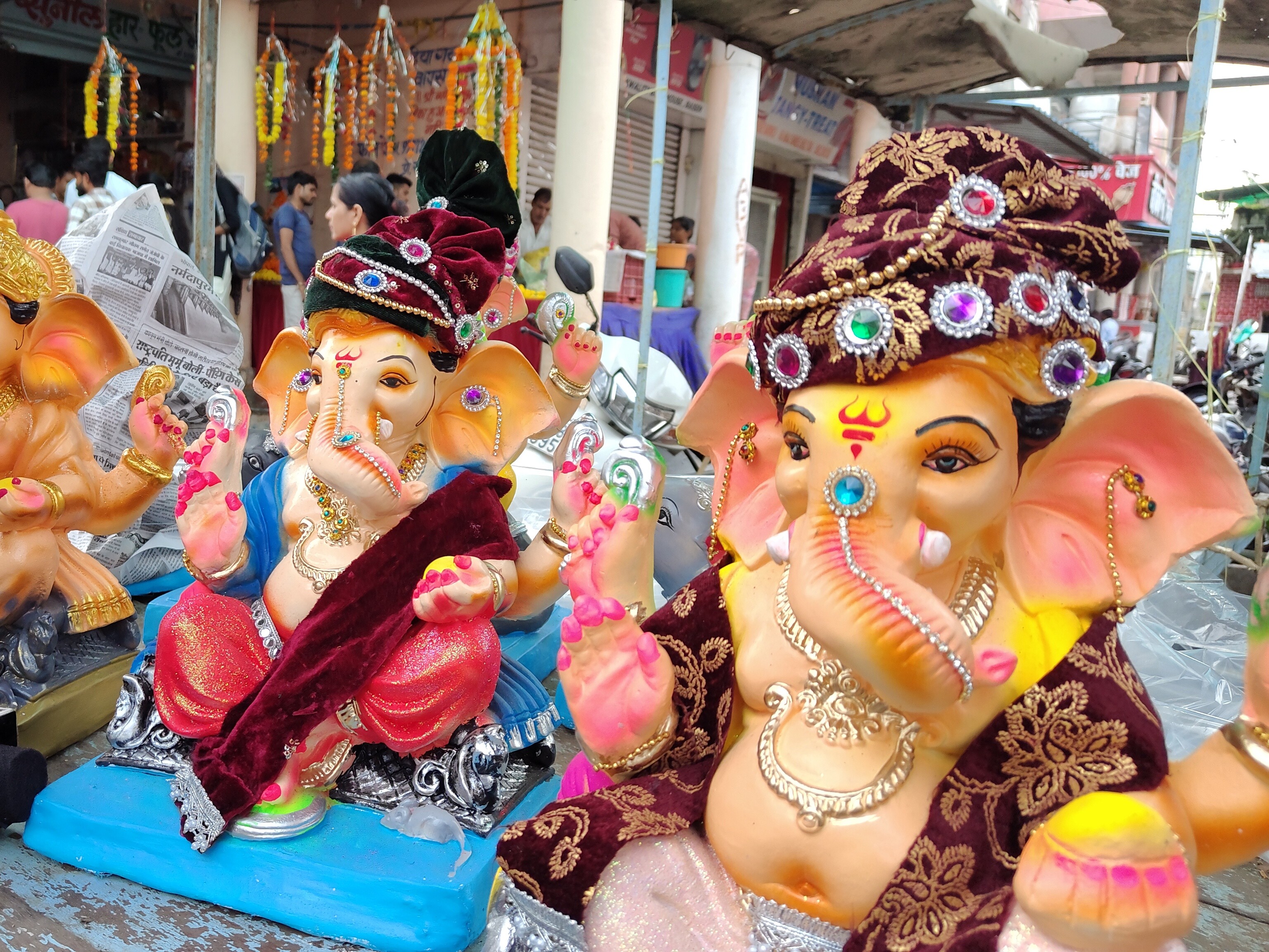 बाजार में लोगों तरह-तरह की गणेश प्रतिमाएं आईं