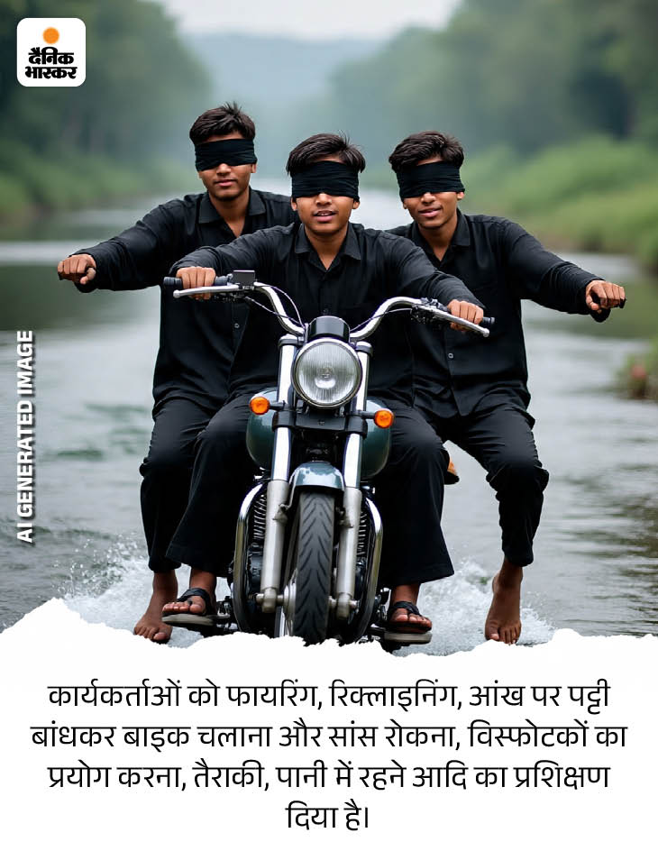 आंख पर पट्टी बांधकर बाइक चलाना सिखाया