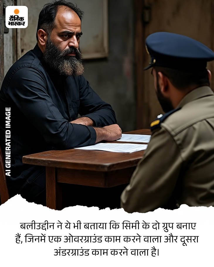 बलीउद्दीन ने पुलिस को पूछताछ में बताया कि आरोपी सफदर नागौरी, अमरूद्दीन नागौरी, हफीज हुसैन, अब्दुल सुभान, अब्दुल अलीम आए थे और उससे मिले थे। आरोपियों ने कहा था कि सिमी कार्यकर्ताओं को सक्रिय बनाना है, क्योंकि मुसलमानों पर बहुत हमले हो रहे हैं। जिहादी तैयार करना है और उन्हें सक्रिय बनाना है।