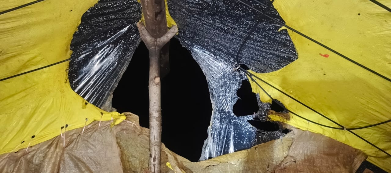 पांडाल को चीरते हुए भीतर गिरी बिजली
