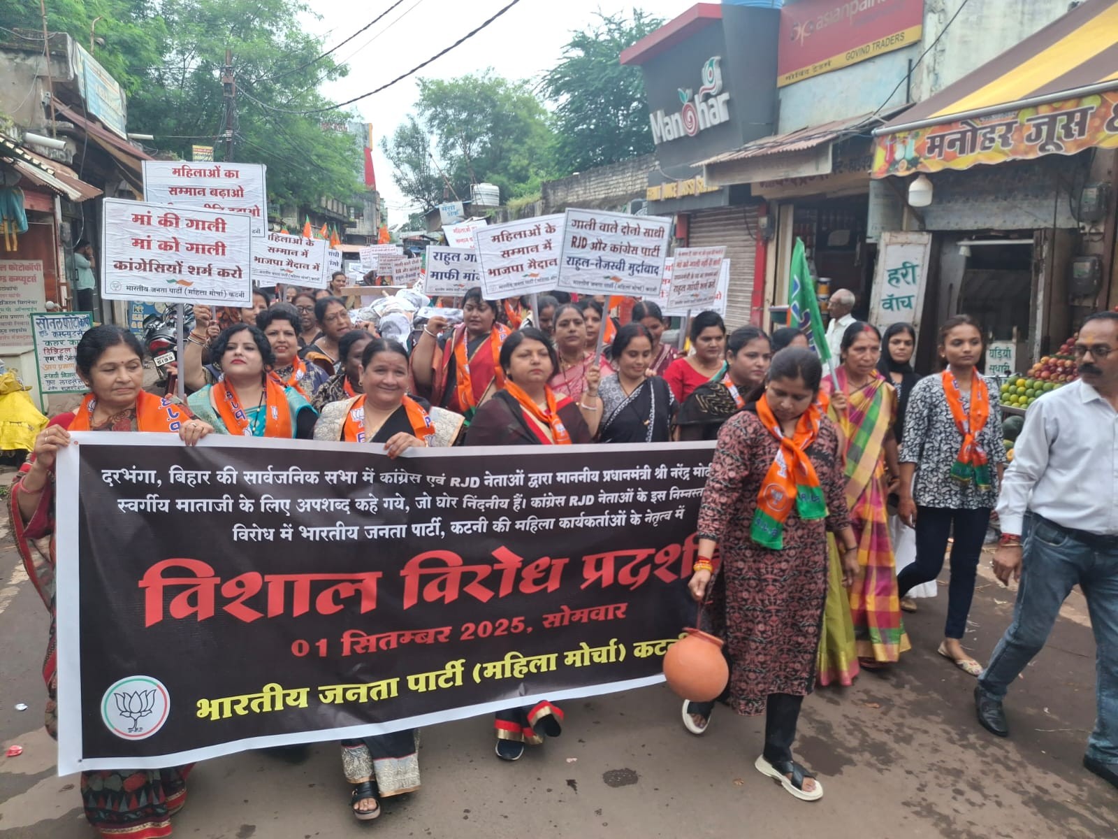 प्रधानमंत्री नरेंद्र मोदी की दिवंगत माता के खिलाफ अभद्र टिप्पणी के विरोध में कटनी भाजपा ने प्रदर्शन किया। इस दौरान कार्यकर्ताओं ने राहुल गांधी और तेजस्वी यादव का पुतला दहन कर अपना आक्रोश व्यक्त किया।