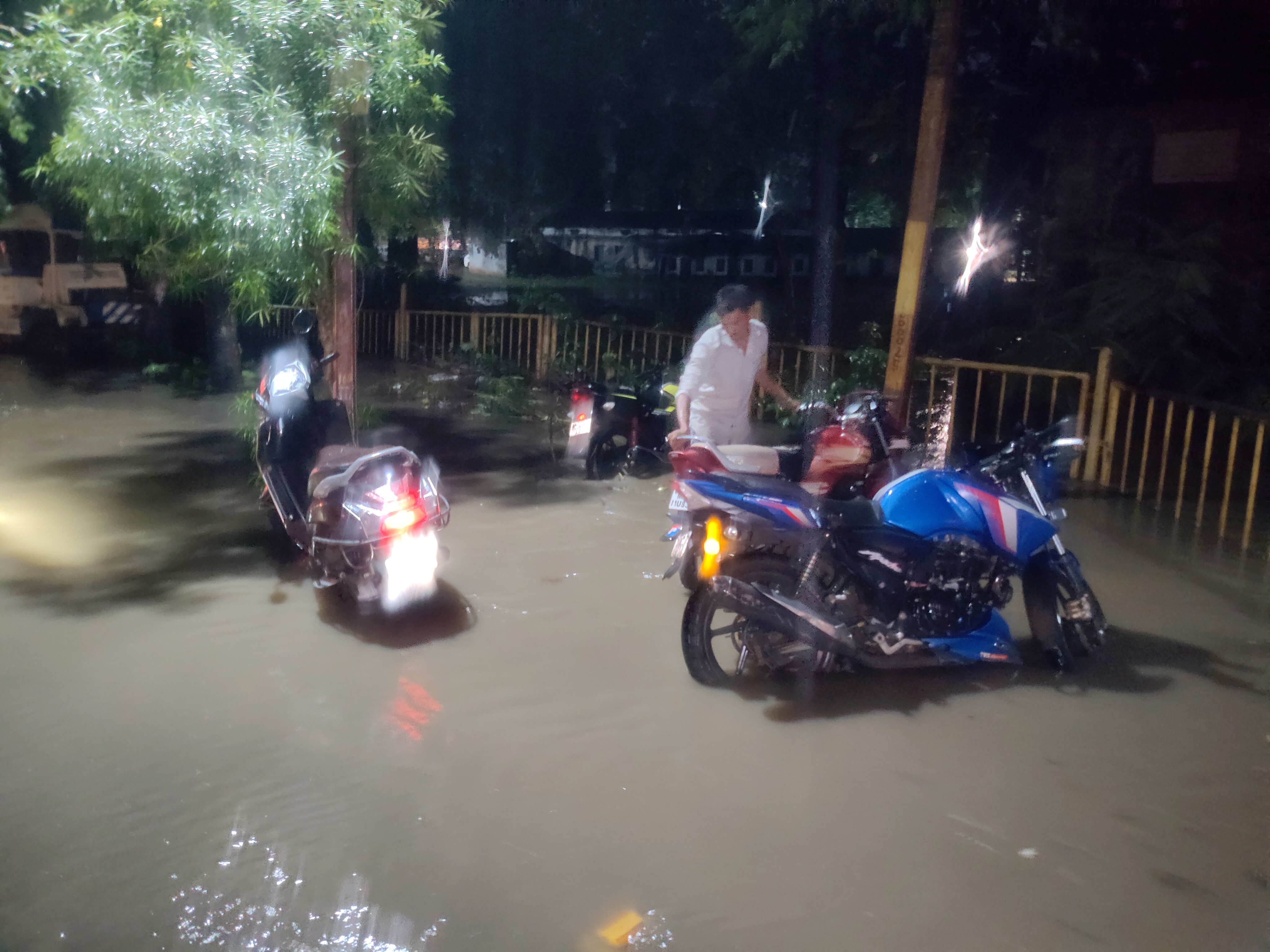 रविवार शाम करीब 45 मिनट की तेज बारिश ने शहर की हालत बिगाड़ दी। जयस्तंभ क्षेत्र और आसपास के बाजार में डेढ़ से दो फीट तक पानी भर गया। दुकानों और होटलों में पानी घुस गया, सड़क किनारे लगी दुकानों की सब्जियां बह गईं। जिला अस्पताल परिसर में भी पानी भर गया।
