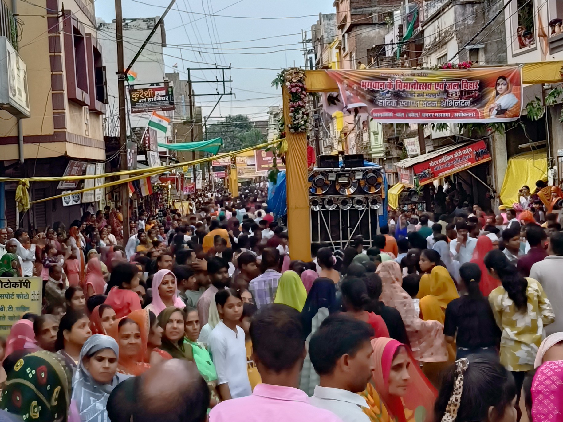 श्रद्धालुओं ने स्वागत द्वार सजाए और विमानों का फूल वर्षा से स्वागत किया। लोगों ने घरों के बाहर आरती उतारी और पूजन किया। कार्यक्रम में प्रसाद वितरण भी किया गया।