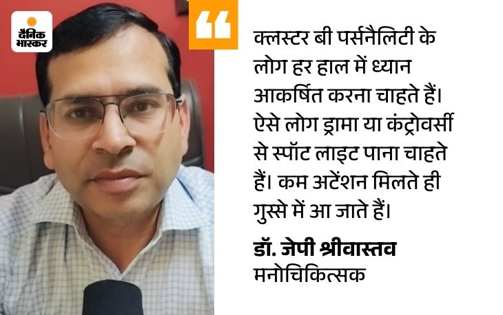 क्लस्टर बी पर्सनॉलिटी के लोग अपनी छवि को लेकर अत्यधिक संवेदनशील होते हैं। आसपास के लोगों से ज्यादा तवज्जो न मिलने पर और एग्रेसिव हो जाते हैं। हमेशा ध्यान आकर्षित करने की कोशिश करते हैं। सोशल मीडिया पर यह बार-बार रील्स, स्टोरी और उत्तेजक कंटेंट के रूप में दिखता है।