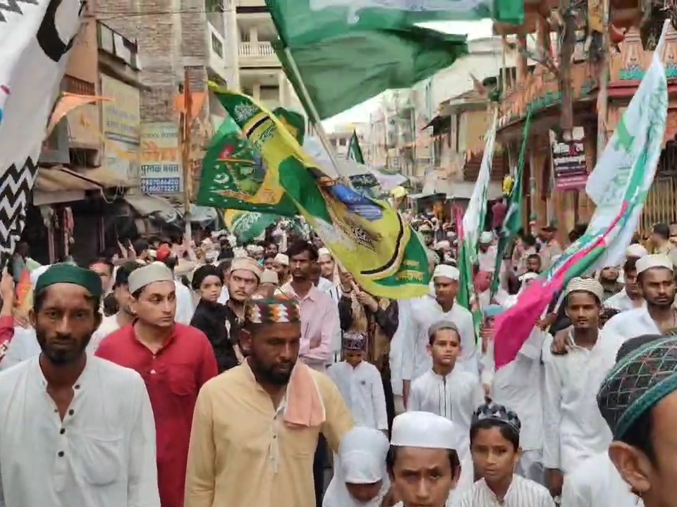 खरगोन में पैगंबर हजरत मोहम्मद साहब के 1500वें योमे पैदाइश के अवसर पर ईद मिलादुन्नबी का त्योहार मनाया गया। शुक्रवार सुबह 9 बजे पुरानी सब्जी मंडी से हजारों की संख्या में मुस्लिम समाज ने जुलूस निकाला।