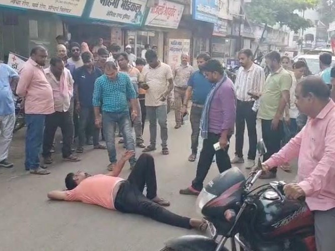 बड़वानी जिला मुख्यालय में आशाग्राम रोड पर स्थित निजी लैब और क्लिनिक के सामने अव्यवस्थित पार्किंग के विरोध में एक व्यक्ति ने अनोखा प्रदर्शन किया। उसने सड़क पर लेटकर विरोध जताया।
