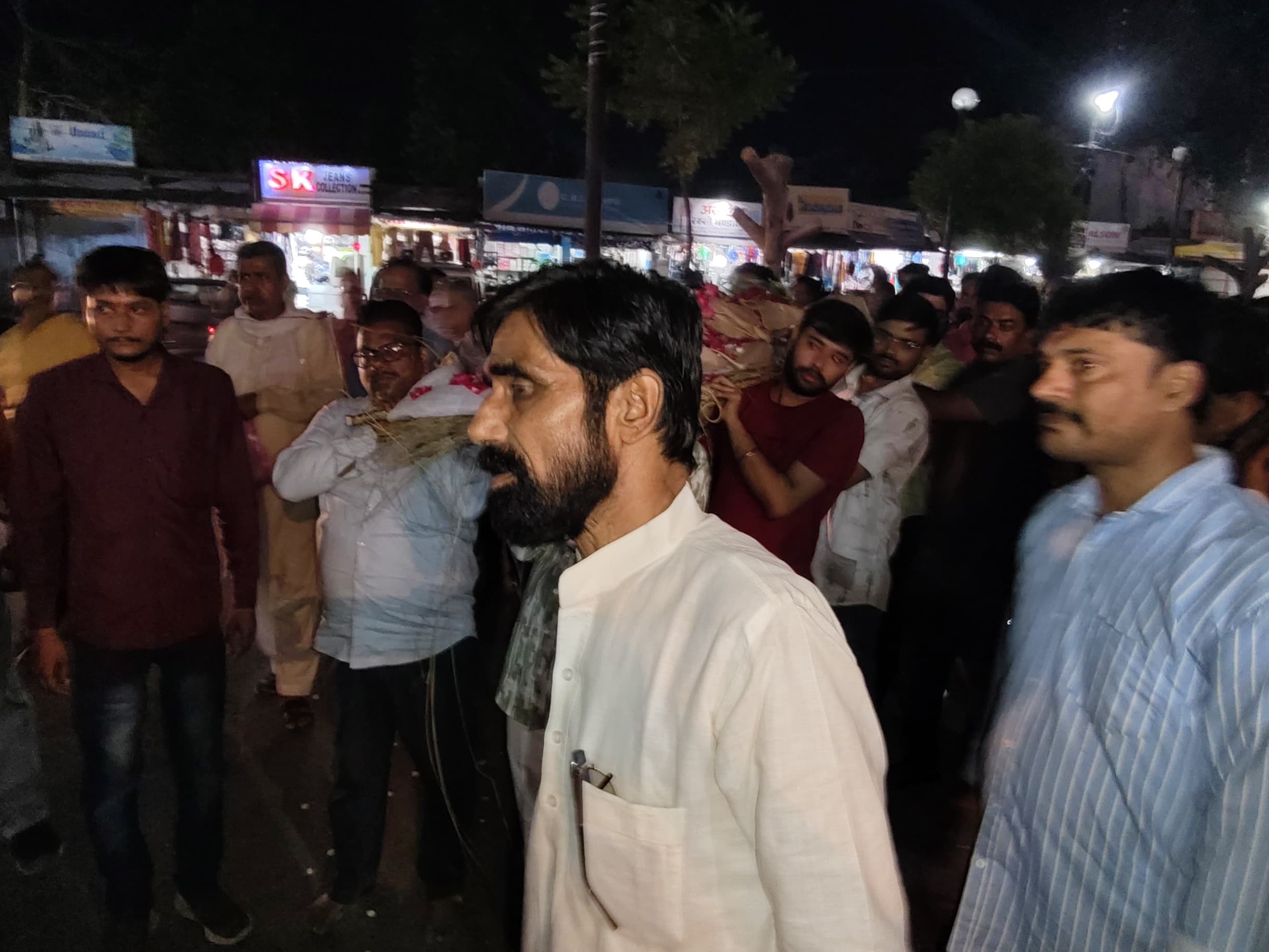 शव को घर से एंबुलेंस तक पहुंचाया गया है।