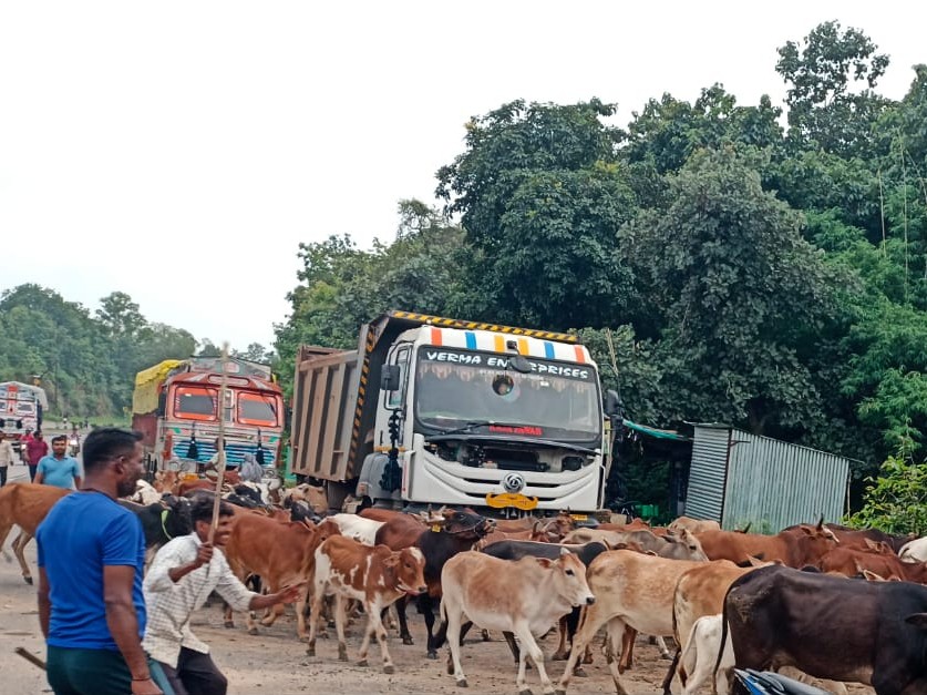 बीते दिनों सड़क पर बैठी 10 गायों को ट्रक ने कुचल दिया था जिससे उनकी मौत हो गई थी।