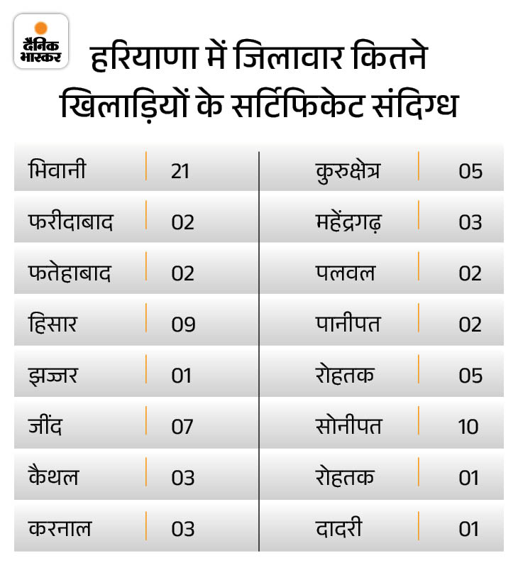 2018 से 2022 बीच हुए थे जारी इन खेल प्रमाण पत्रों के आधार पर खेल कोटे से सरकारी नौकरियां प्राप्त की जाती रही हैं। खेल उप निदेशक मंजीत सिंह की ओर से अंबाला, रोहतक, गुरुग्राम तथा हिसार के खेल उप निदेशकों को संदिग्ध सर्टिफिकेट वाले 76 खिलाड़ियों की सूची भेजते हुए कहा गया था कि उनके कार्यालयों की ओर से जारी ग्रेडेशन सर्टिफिकेट की निदेशालय में गठित ग्रेडेशन वेरिफिकेशन कमेटी ने जांच की।