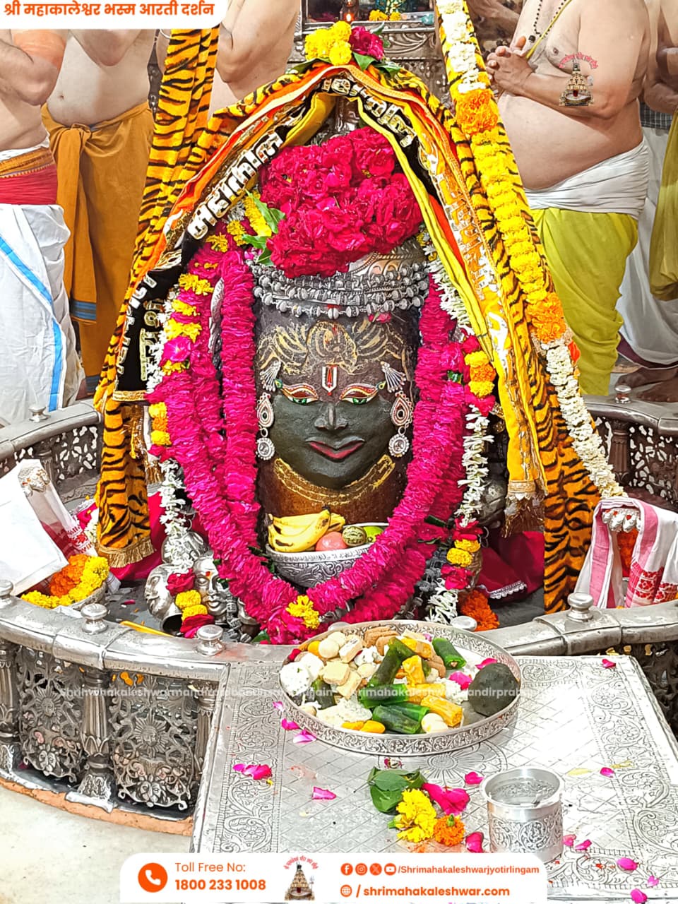 भस्म अर्पित करने के बाद शेषनाग का रजत मुकुट, रजत की मुण्डमाल और रुद्राक्ष की माला के साथ सुगन्धित पुष्प से बनी माला अर्पित की। भगवान महाकाल ने मोगरे और गुलाब के सुगंधित पुष्प धारण किए। फल और मिष्ठान का भोग लगाया।