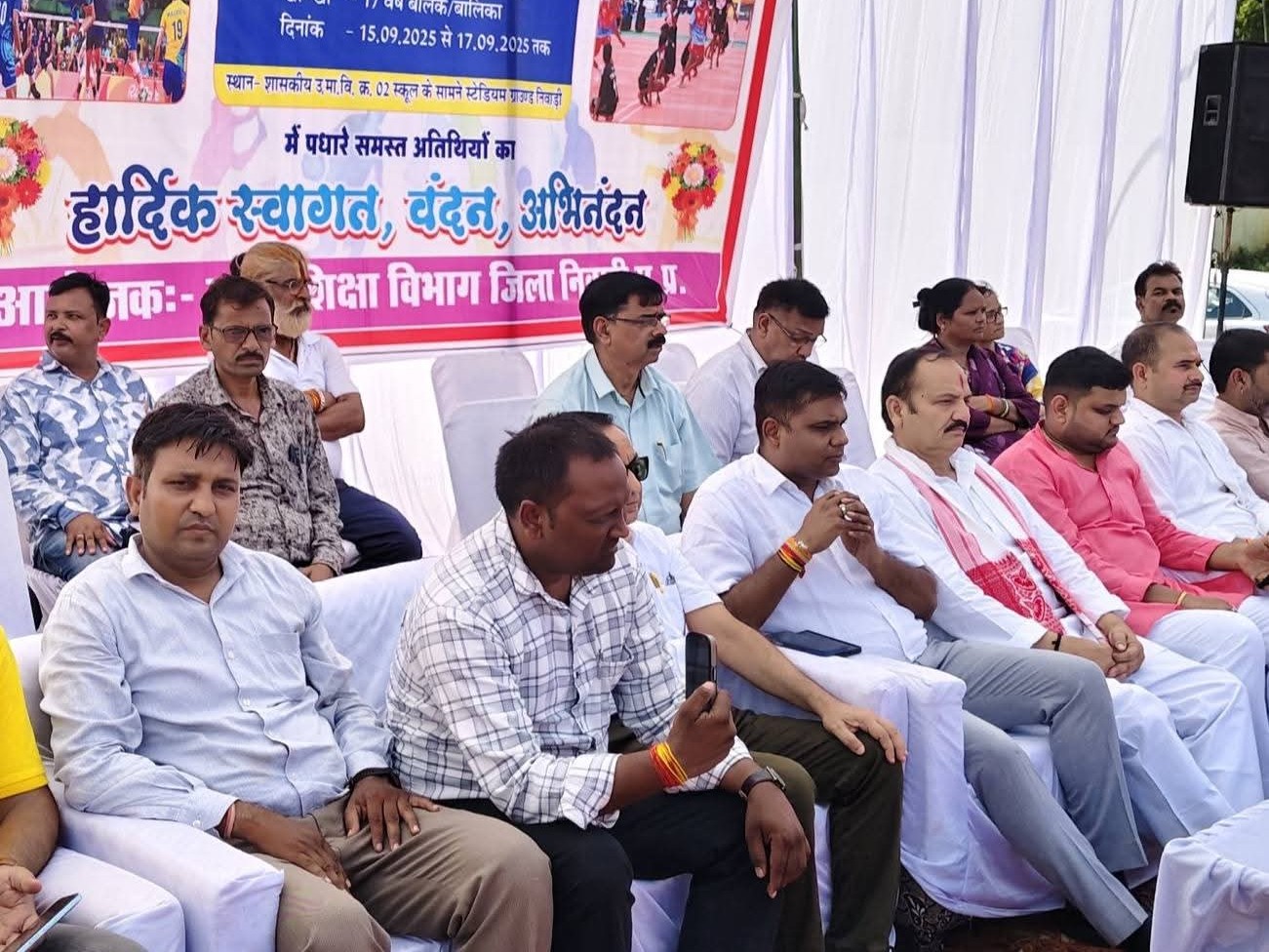 निवाड़ी में 69वीं संभागीय शालेय खेल प्रतियोगिता का आयोजन शासकीय उच्चतर माध्यमिक विद्यालय 2 के स्टेडियम में किया जा रहा है। सोमवार को भाजपा जिला अध्यक्ष राजेश पटेरिया ने ध्वजारोहण कर प्रतियोगिता का शुभारंभ किया।