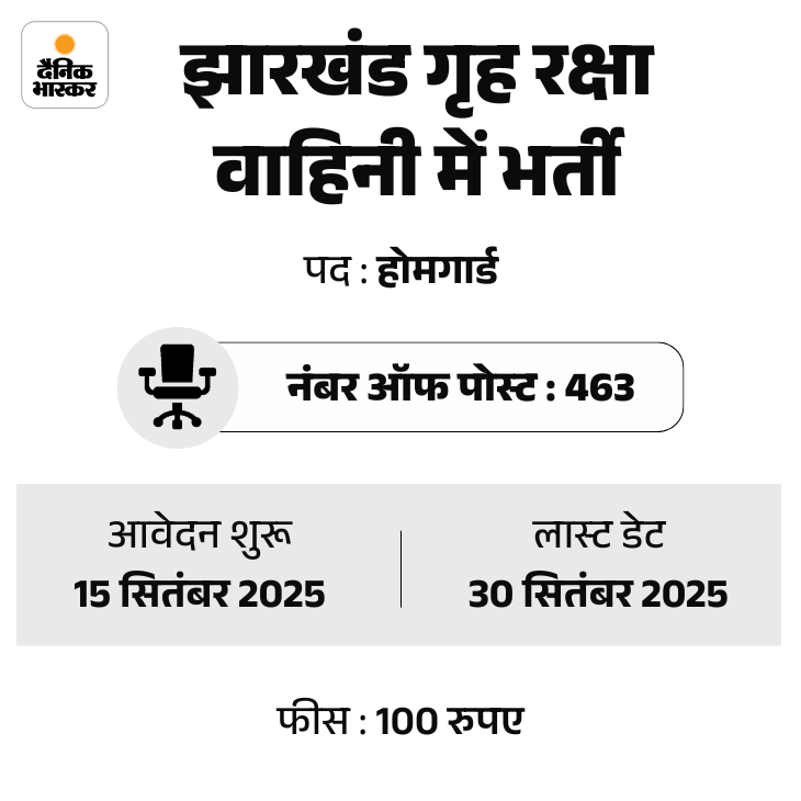 झारखंड गृह रक्षा वाहिनी, चतरा ने ग्रामीण और शहरी होमगार्ड के 463 पदों पर भर्ती निकाली है। उम्मीदवार ऑफिशियल वेबसाइट recruitment.jharkhand.gov.in पर जाकर आवेदन कर सकते हैं।
