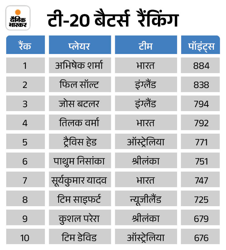 ICC ने बुधवार को वीकली रैंकिंग जारी की। उनके अलावा नंबर-1 टी20 इंटरनेशनल बैटर अभिषेक शर्मा ने अपने करियर की हाई रेटिंग हासिल की है।