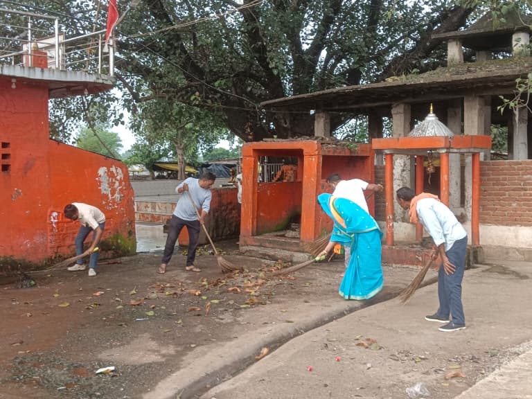 नईगढ़ी। भारतीय जनता पार्टी मंडल नईगढ़ी द्वारा गुरुवार सुबह माता अष्टभुजा धाम मंदिर परिसर में स्वच्छता अभियान चलाया गया। यह अभियान सेवा संकल्प पखवाड़ा के तहत आयोजित किया गया, जो प्रधानमंत्री नरेंद्र मोदी के जन्मदिन (17 सितंबर) से शुरू होकर 2 अक्टूबर त
