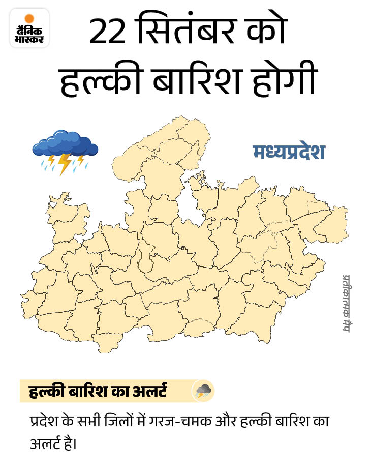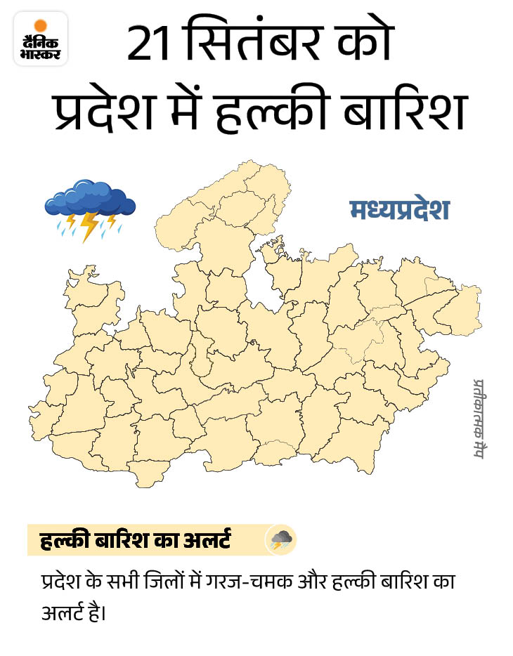 भोपाल के भदभदा डैम का एक गेट फिर से खोला गया। इस सीजन में चार बार गेट खुल चुके हैं। बैतूल में सवा इंच और रतलाम-छिंदवाड़ा में 1-1 इंच पानी गिर गया। नर्मदापुरम के पचमढ़ी, शिवपुरी, जबलपुर, छतरपुर के नौगांव, सीधी, बड़वानी में भी हल्की बारिश हुई। भोपाल में शाम में तेज बारिश हुई।