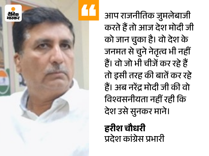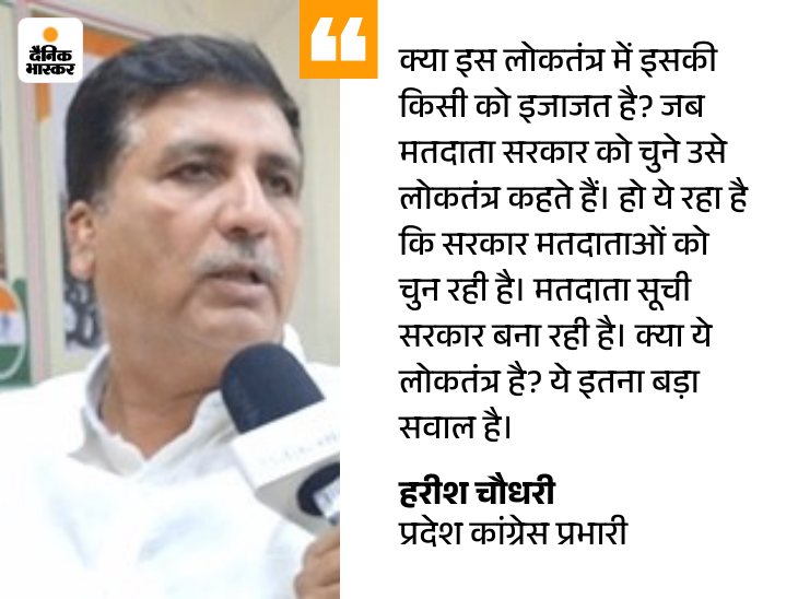 सवाल: राज्य और राष्ट्रीय स्तर के बडे़ नेताओं को जिलाध्यक्ष बनाने के पीछे क्या सोच है? हरीश चौधरी: जो लड़ाई हम राहुल गांधी के नेतृत्व में लड़ी जा रही है जिसमें संविधान, लोकतंत्र, संवैधानिक संस्थाओं और देश को बचाना ये देश के सामने सबसे बड़ी चुनौती है। पिछले दिनों हमारी ये समझ बनी है कि हमें लड़ाई लोगों के बीच में लड़नी है।