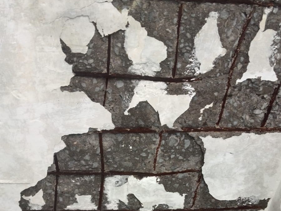 छत के सरिये बाहर निकल आए हैं, वहीं अध्यापक अपनी बेंच लगाकर बैठते हैं वहां भी प्लास्टर उखड़ चुका है।