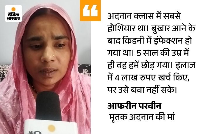 आफरीन परवीन की आंखों में आंसू थे। इस संयुक्त परिवार में कुछ दिन पहले तक 12 बच्चे थे, लेकिन अब सिर्फ 11 ही बचे हैं। उनका सबसे बड़ा बेटा अदनान, जो सिर्फ 5 साल 8 महीने का था, अब इस दुनिया में नहीं रहा। दोनों किडनियां खराब होने के कारण उसकी जान चली गई। आफरीन ने बताया कि 21 अगस्त को अदनान को पहली बार बुखार आया था। दवा लेने के बाद वह ठीक हो गया था, लेकिन 26 अगस्त को उसे बार-बार उल्टी होने लगी, जिसके कारण उसे परासिया के अस्पताल में भर्ती कराया गया। 27 अगस्त को फिर से बुखार आने पर उसे इंजेक्शन दिया गया। अदनान लगातार पेट दर्द और उल्टी की शिकायत कर रहा था।