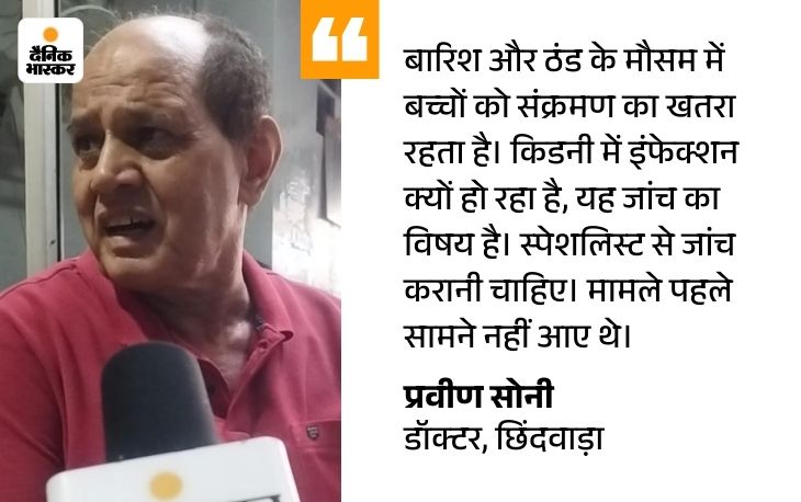 परासिया सिविल अस्पताल के ब्लॉक मेडिकल ऑफिसर अंकित सहलाम ने बताया कि सर्दी, जुकाम और बुखार की शिकायत के बाद कुछ बच्चों का निजी अस्पताल में इलाज कराया गया था। इनमें अचानक किडनी की समस्या आने लगी। बच्चों को छिंदवाड़ा और नागपुर रेफर किया गया, तो पता चला कि किडनी में इंफेक्शन हो गया है। तीन बच्चों की मौत हो चुकी है। कुछ बच्चों का इलाज अभी भी जारी है। प्रशासन की टीम लगातार इलाकों का दौरा कर 5 साल तक के बच्चों का सर्वे कर सैंपल कलेक्ट कर रही है। जांच के बाद ही कारणों का पता चल पाएगा।