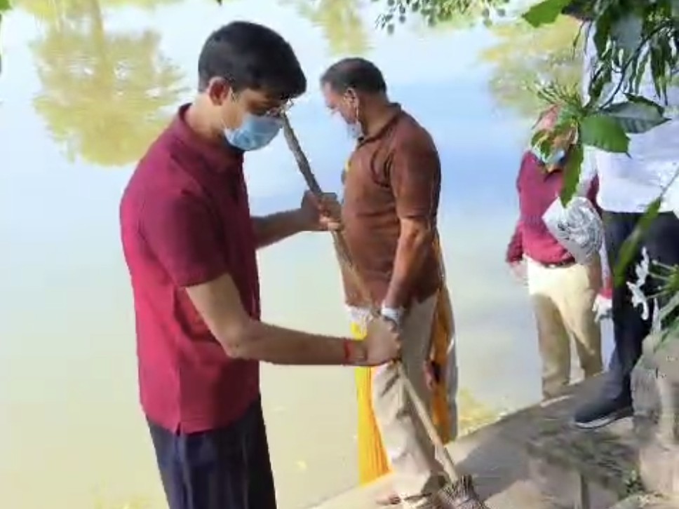 पंडित दीनदयाल उपाध्याय की जयंती पर निवाड़ी में सेवा और समर्पण का अनूठा उदाहरण देखने को मिला। निवाड़ी विधायक अनिल जैन ने सेवा पखवाड़े के तहत नगर के छोटे तालाब पर श्रमदान किया। उन्होंने स्वयं झाड़ू उठाकर तालाब किनारे और घाटों की सफाई की।