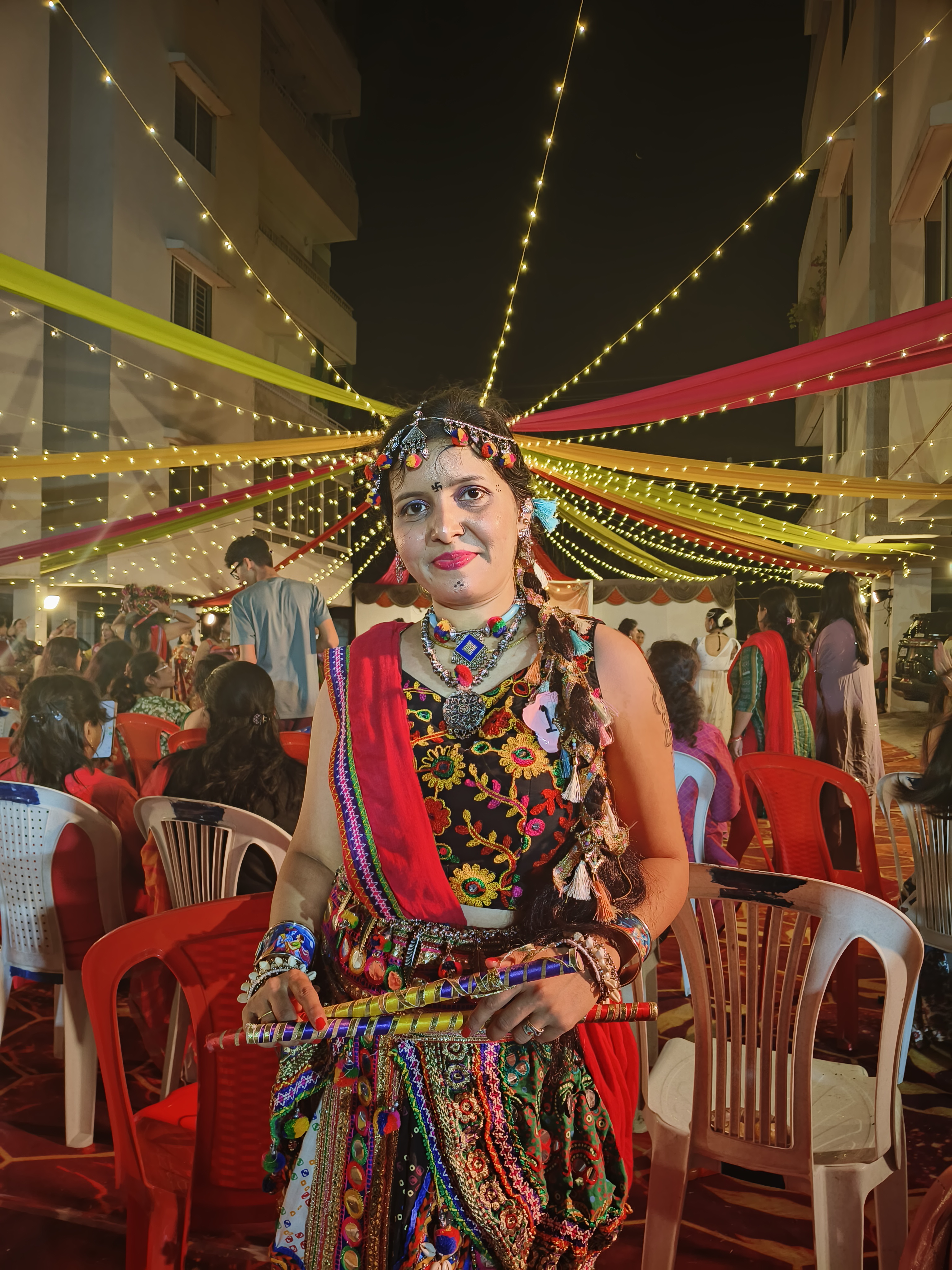सोसाइटी में गरबे के आयोजन की पिछले एक महीने से प्रैक्टिस चल रही थी। पुरुष भी महिलाओं के साथ थिरकते दिखे।