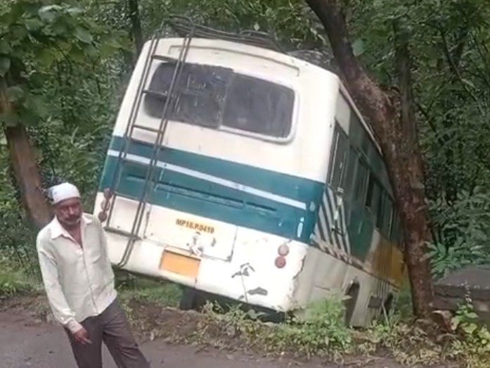 पन्ना-छतरपुर मार्ग पर नेशनल हाइवे-39 की भैरव टेक घाटी में शनिवार 27 सितंबर को सुबह एक यात्री बस खाई में गिर गई। बस की स्टेयरिंग फेल होने से यह हादसा हुआ। गनीमत रही कि बस एक पेड़ से टकराकर रुक गई, जिससे बड़ा हादसा टल गया और यात्रियों की जान बच गई।