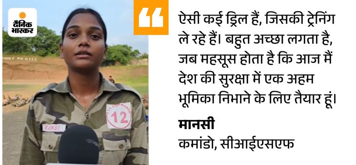 कमांडो बोली- कमाल की जिंदगी इसी बीच, हमारी मुलाकात ट्रोलिंग कर आईं पसीने से लथपथ कमांडो मानसी से हुई। इतने कठिन टास्क के बाद थकावट और शिकन तो जरा सी भी चेहरे पर नजर नहीं आ रही है।