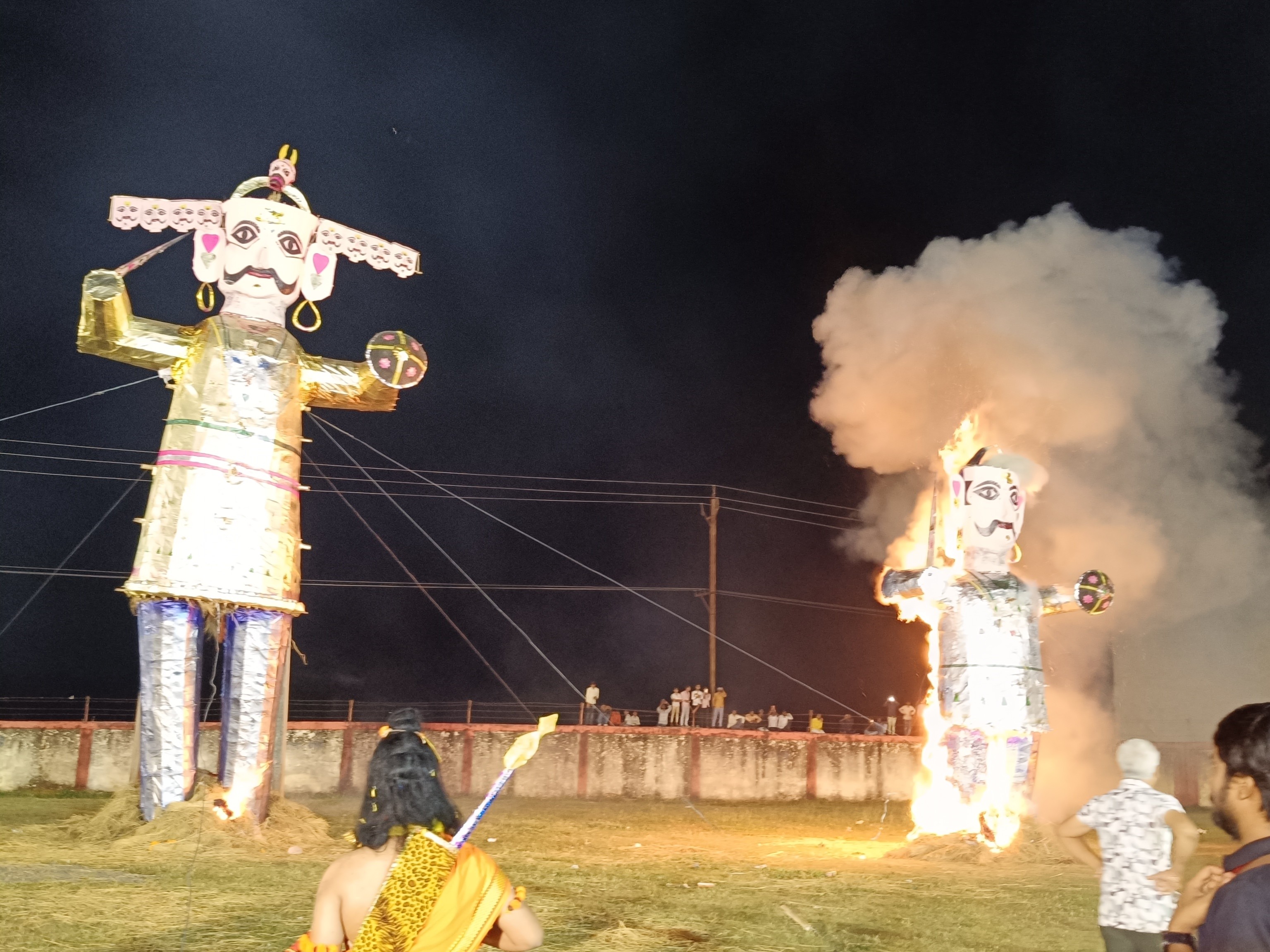 लोगों से की बुराइयां त्यागने की अपील परंपरा के अनुसार, समिति के पदाधिकारियों के साथ कलेक्टर आदित्य सिंह और पुलिस अधीक्षक राजीव कुमार मिश्रा ने विधिवत पूजन किया। इस अवसर पर सभी ने अपने विचार व्यक्त किए और रावण से जुड़ी बुराइयों पर प्रकाश डाला। उन्होंने बताया कि यह पुतला दहन असत्य पर सत्य की जीत का प्रतीक है। समिति अध्यक्ष यादवेंद्र सिंह यादव ने लोगों से आंतरिक बुराइयों को त्यागने का आह्वान किया।