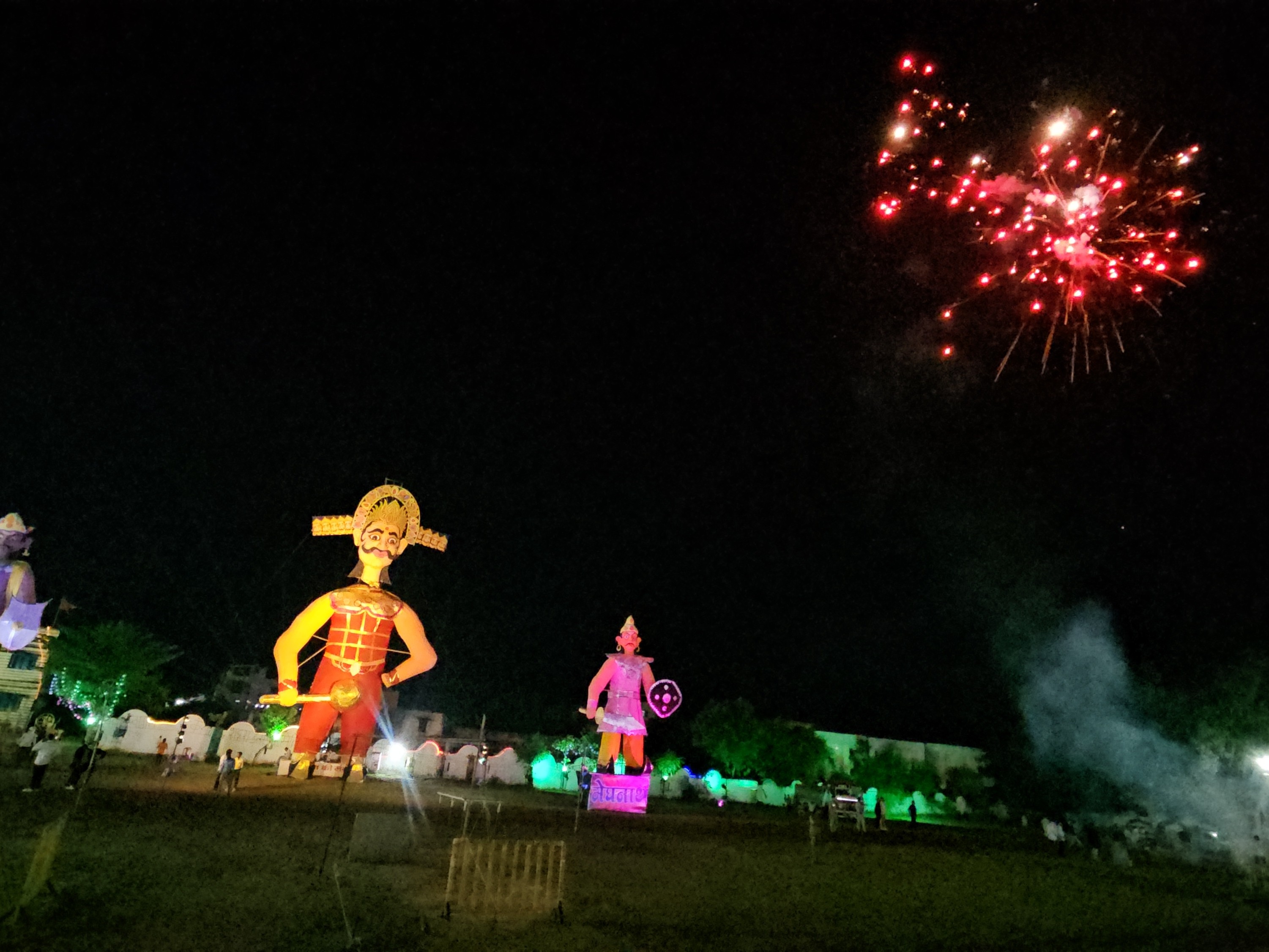 समिति सदस्यों ने शमी पूजन किया। इसके बाद शहरवासियों ने मनमोहक आतिशबाजी का लुत्फ उठाया। आतिशबाजी के बाद भगवान श्रीराम बने पात्र ने रावण का वध किया। रावण के अंत होते ही स्टेडियम ग्राउंड ‘जय श्रीराम’ के उद्घोष से गूंज उठा।