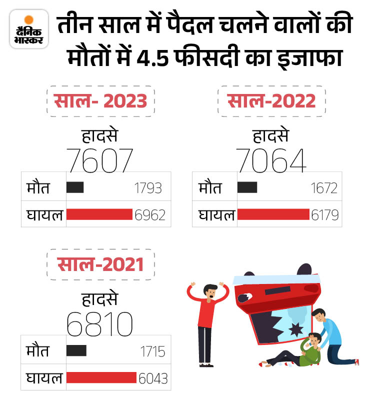 चार केस से समझिए कैसे जानलेवा साबित हो रहा बाएं पैदल चलने का नियम केस1: रतलाम के एक वाहन शोरूम पर चौकीदारी करने वाले नानूराम सिंघाड़ की 24 अगस्त को सड़क हादसे में मौत हो गई। नानूराम महू-नीमच हाईवे से सटे खाराखेड़ी रिंगरोड पर पैदल घर जा रहे थे, तभी पीछे से आ रही बाइक ने नानूराम को टक्कर मारी, सिर में चोट लगने से उनकी मौके पर ही मौत हो गई।