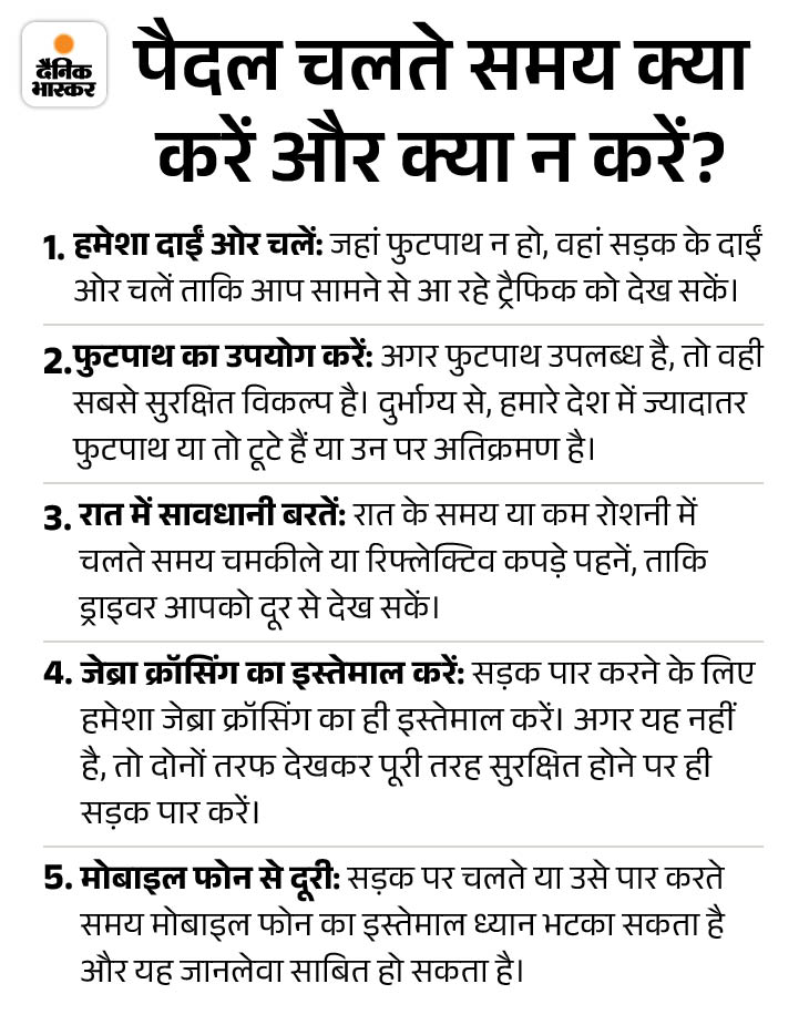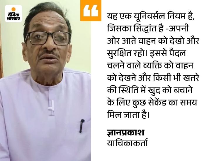 जब तक कानून में स्पष्टता नहीं आती, तब तक अपनी सुरक्षा की जिम्मेदारी हमें खुद उठानी होगी। जहां फुटपाथ नहीं है वहां दाएं ओर मतलब आ रहे वाहनों की ओर सिर करके चलना चाहिए। हालांकि, मोटर व्हीकल एक्ट में सरकार को नियम बनाने का अधिकार है।
