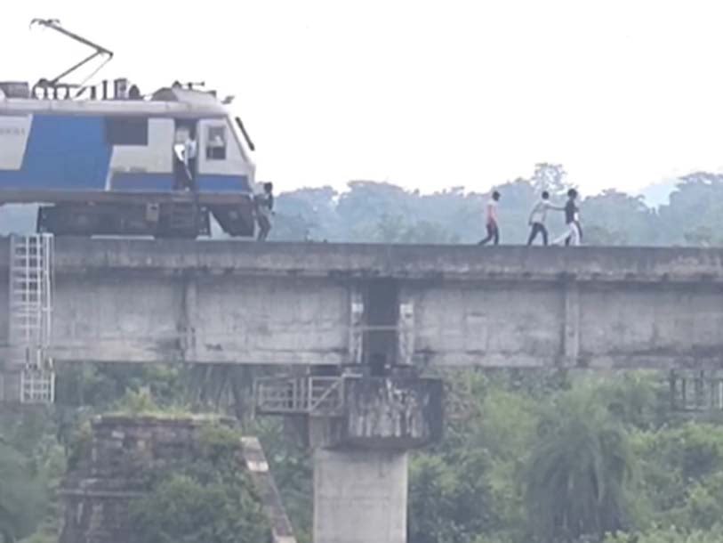 बालाघाट-वारासिवनी ट्रैक पर शनिवार शाम करीब साढ़े 3 बजे एक शख्स चलती पैसेंजर ट्रेन के सामने आ गया। इससे ट्रेन वैनगंगा नदी के रेलवे पुल पर 15 मिनट तक खड़ी रही। इसका वीडियो भी सामने आया है। जिसमें लोको पायलट संबंधित शख्स को ट्रैक से हटने के लिए कह रहा ह