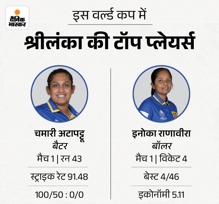 श्रीलंका ने इस टूर्नामेंट का पहला मैच भारत के खिलाफ 59 रन से गंवाया। वहीं, ऑस्ट्रेलिया ने अपने पहले मैच में न्यूजीलैंड को 89 रन से हराया था। टीम पॉइंट्स टेबल में पहले नंबर पर है। श्रीलंका चौथे स्थान पर है। श्रीलंका की टीम अब तक ऑस्टेलिया के खिलाफ विमेंस वनडे नहीं जीत सकी है। टीम को आज होम ग्राउंड का फायदा मिल सकता है।