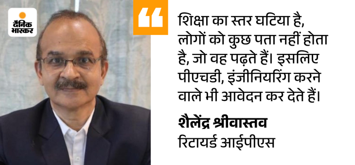 पूर्व परिवहन आयुक्त और रिटायर्ड आईपीएस अफसर शैलेंद्र श्रीवास्तव कहते हैं कि आरक्षक पद के लिए इतनी संख्या में आवेदन आए हैं, उसके पीछे एमपी समेत देश भर में बेरोजगारी मुख्य वजह है। जहां तक बात इंजीनियर और पीएचडी होल्डर्स की है तो इसमें हकीकत यह है कि युवाओं का आसानी से डिग्री मिल जाती है, इसलिए वे पूरी तरह से एक्सपर्ट न होने के कारण आसान नौकरी तलाशते हैं। श्रीवास्तव से भास्कर ने आरक्षक के 7500 पदों के लिए आए 9.50 लाख से अधिक आवेदनों को लेकर बात की।