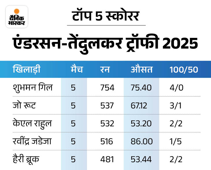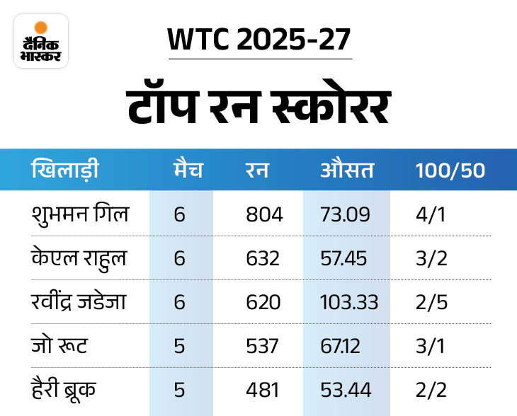 गिल इंग्लैंड दौरे के टॉप रन स्कोरर थे इससे पहले, इंग्लैंड दौरे पर खेले गए पांच टेस्ट मैचों की सीरीज में गिल ने 754 रन बनाए थे। टीम इंडिया ने इसी इंग्लैंड सीरीज से WTC 2025-27 साइकल की शुरुआत की थी। उस सीरीज में गिल सबसे ज्यादा रन बनाने वाले बल्लेबाज रहे,जबकि इंग्लैंड के जो रूट 537 रन बनाकर दूसरे स्थान पर रहे।