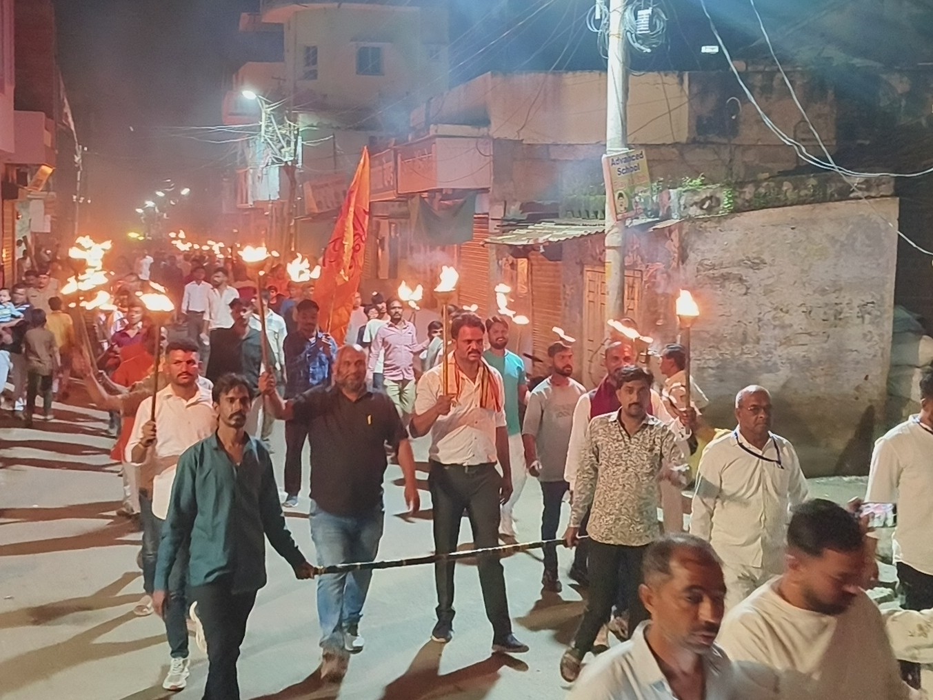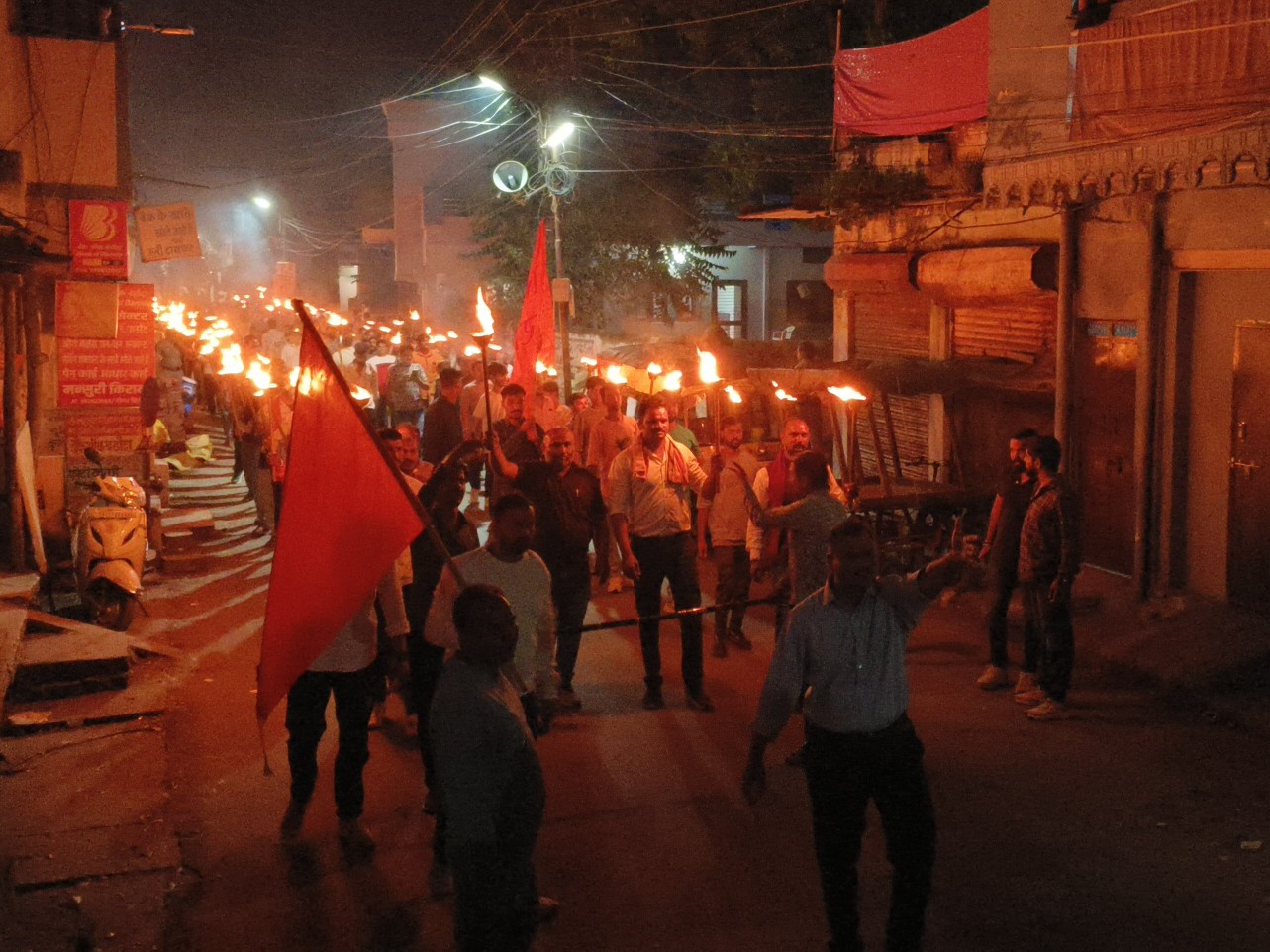 नगर के मुख्य रास्तों से निकाला मशाल जुलूस।