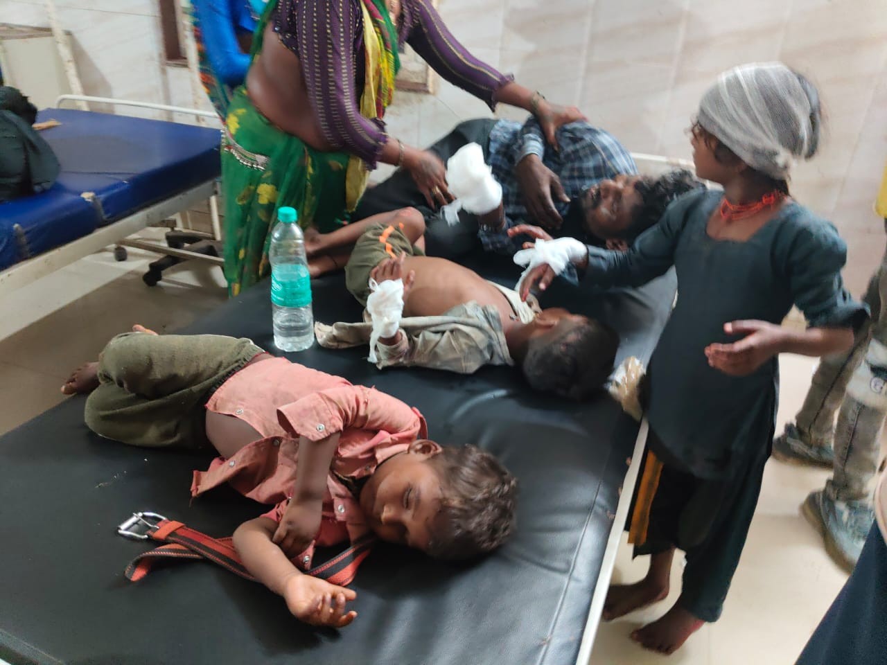 बीना सिविल अस्पताल में घायल बच्चों का इलाज किया जा रहा है।