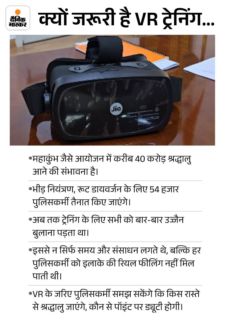 सोमवार को VR सेट का परीक्षण किया है। सबसे पहले पुलिसकर्मी उज्जैन आकर देखेंगे कि उनकी ड्यूटी कहां लगेगी। कौन सा रास्ता कहां से किधर जाएगा। इसके बाद उन्हें बार-बार ट्रेनिंग के लिए उज्जैन नहीं आना पड़ेगा।