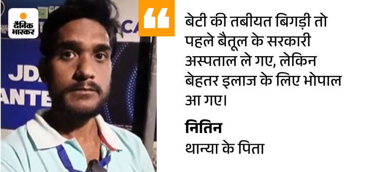 नितिन ने बताया कि डॉ. सोनी ने सिरप लिखा था, लेकिन कौन-सा था, हमें याद नहीं है। इसके बाद बच्ची घर पर ही थी। अचानक उसकी तबीयत बिगड़ी। पहले उसे बुखार आया, फिर पसलियां चलने लगीं। इसके बाद बैतूल के सरकारी अस्पताल गए, लेकिन बेहतर इलाज के लिए भोपाल आ गए।