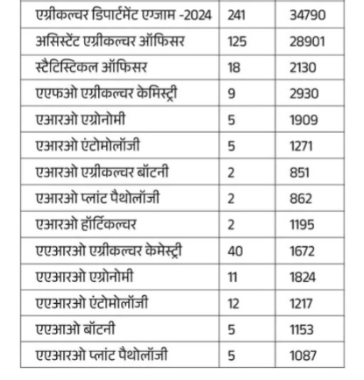 - 16 अक्टूबर को प्रातः 10 से 11.50 बजे तक एग्रीकल्चर रिसर्च ऑफिसर- प्लांट पैथोलॉजी तथा दोपहर 3 से 4.50 बजे तक एग्रीकल्चर रिसर्च ऑफिसर- हॉर्टिकल्चर की परीक्षा का आयोजन होगा।