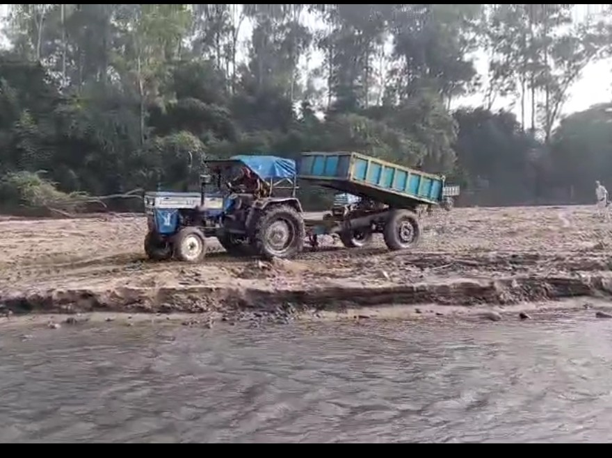 सिंगरौली जिले में खनिज विभाग ने रविवार को अवैध रेत उत्खनन और परिवहन के खिलाफ कार्रवाई की है। विभाग की टीम को देखते ही अवैध रेत का परिवहन कर रहे ट्रैक्टर चालक भागने लगे। इसी दौरान रेत से लदा एक ट्रैक्टर नदी पार करते समय पलट गया। यहां से टीम ने पांच वा