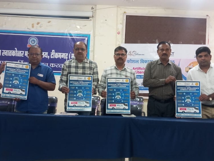 टीकमगढ़ के पीएम श्री पीजी कॉलेज में रविवार को आर्टिफिशियल इंटेलिजेंस (एआई) विषय पर एक कार्यशाला का आयोजन किया गया। इस दौरान छात्रों ने कौशल विकास रथ यात्रा का स्वागत किया और एआई पर आधारित पोस्टर का विमोचन भी किया गया। कार्यशाला में छात्रों को आर्टिफि