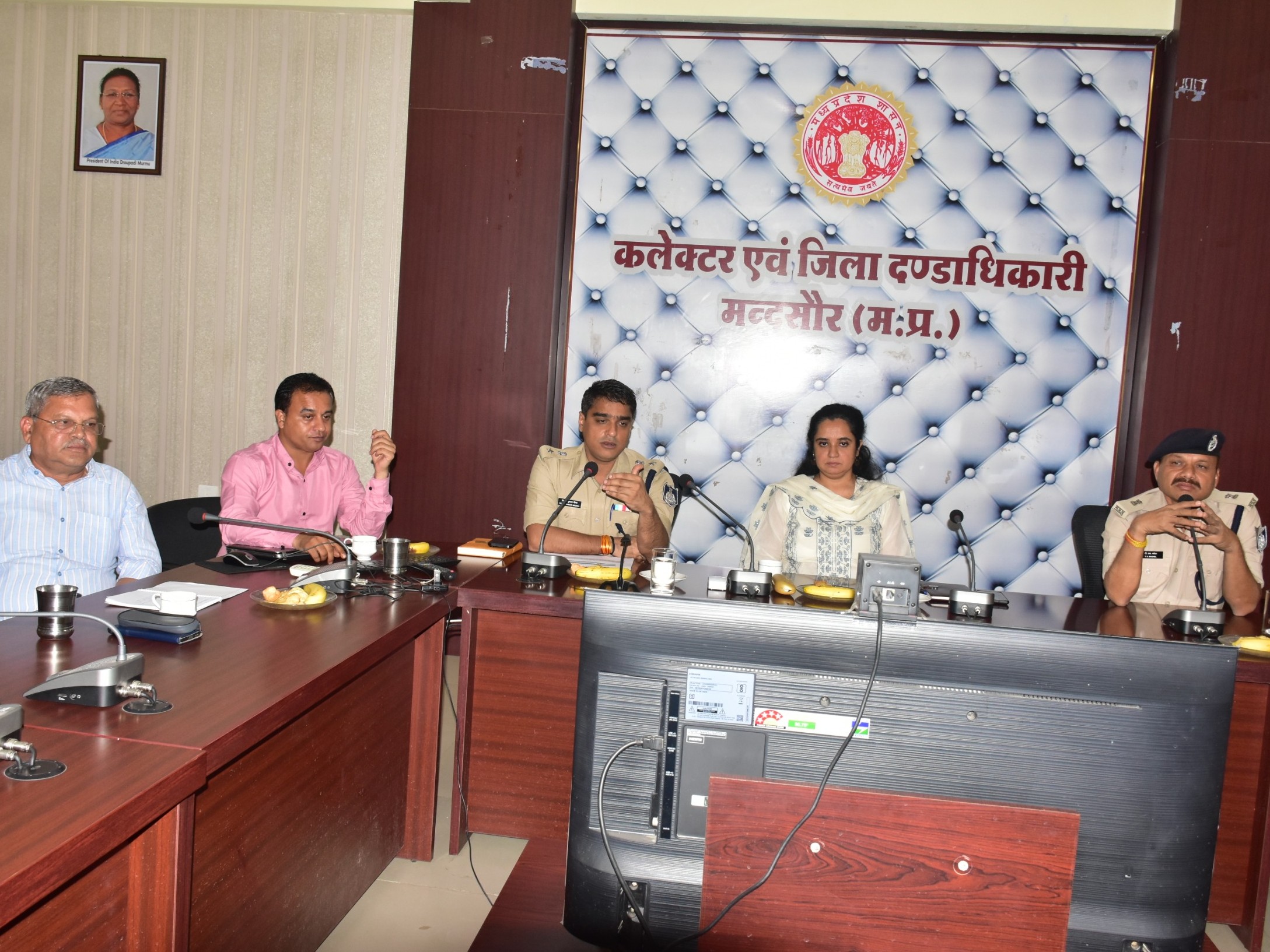 मंदसौर कलेक्टर कार्यालय सभागार में रविवार को सिटिजन फोरम के साथ ट्रैफिक व्यवस्था और रोड सेफ्टी पर एक विशेष बैठक हुई। जिसमें कलेक्टर अदिति गर्ग, एसपी विनोद कुमार मीणा और एडिशनल एसपी टी.एस. बघेल ने विस्तृत जानकारी दी।