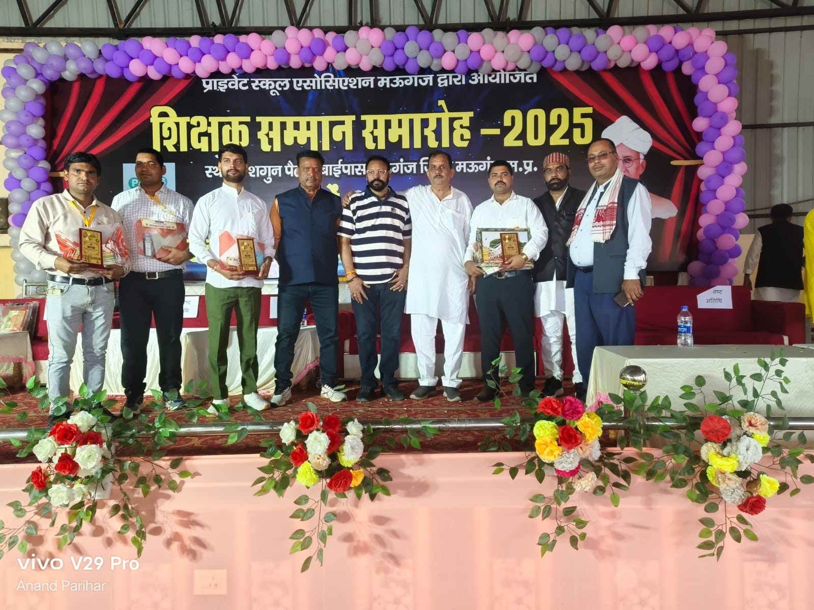 मऊगंज में सोमवार को प्राइवेट स्कूल एसोसिएशन ने शिक्षक सम्मान समारोह का आयोजन किया। मऊगंज की शिक्षा व्यवस्था को बेहतर बनाने वाले लगभग पांच सौ शिक्षकों को इस दौरान शॉल, श्रीफल और सम्मान पत्र देकर सम्मानित किया गया।