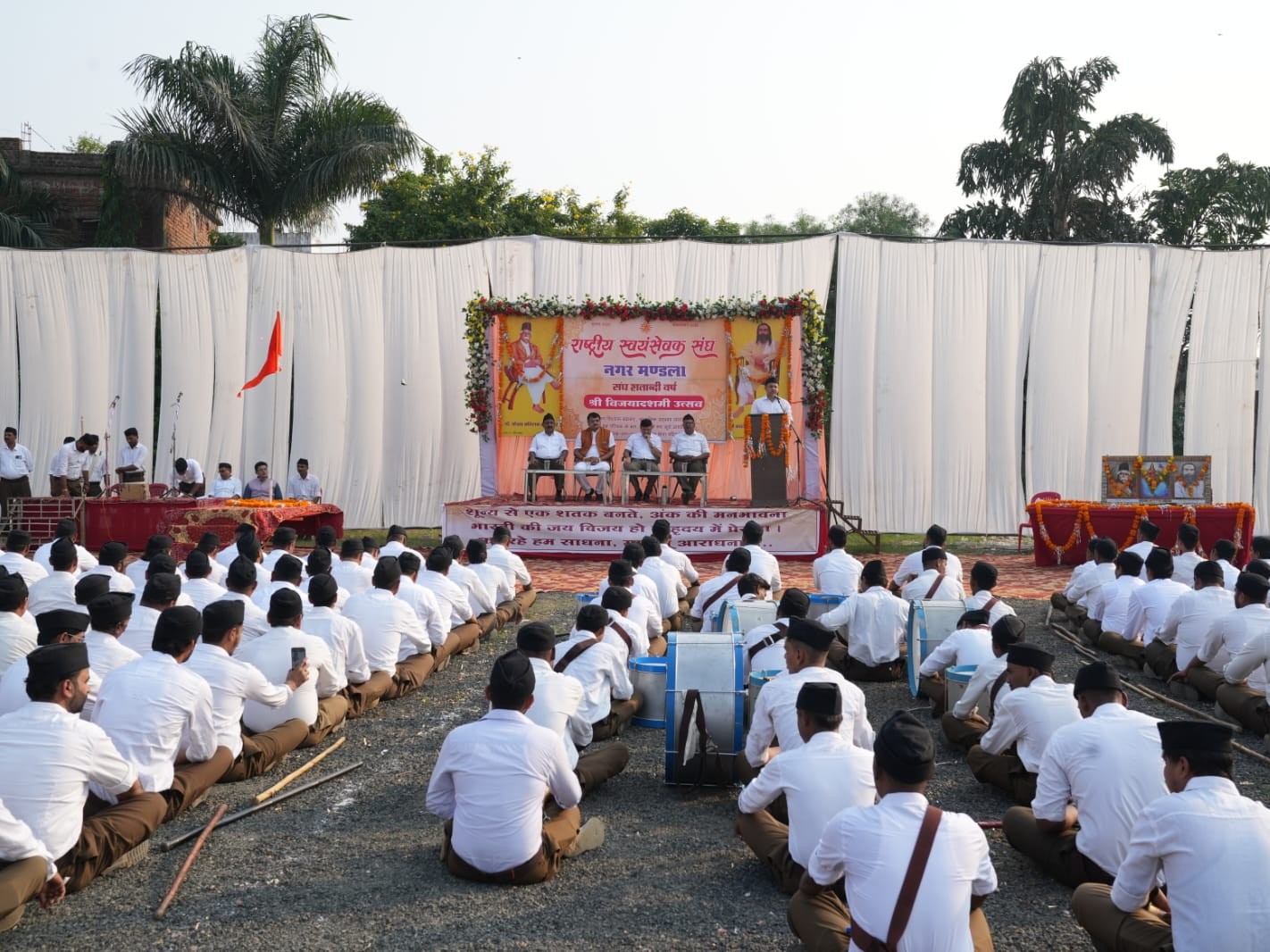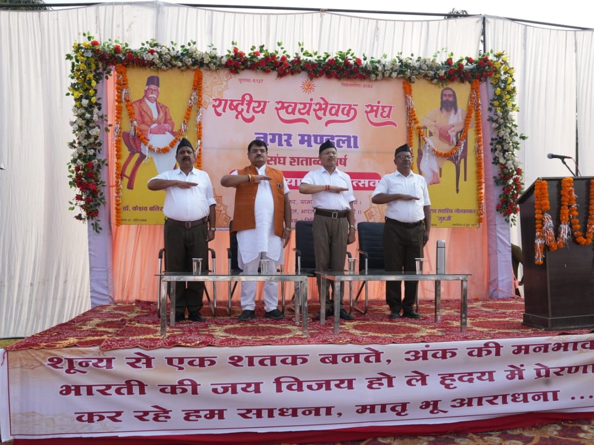 राष्ट्रीय स्वयंसेवक संघ (आरएसएस) के शताब्दी वर्ष के उपलक्ष्य में मंडला नगर में विजयादशमी उत्सव का आयोजन सोमवार शाम को अष्टविनायक लॉन में किया गया। कार्यक्रम का शुभारंभ पारंपरिक शस्त्र पूजन से हुआ। इस अवसर पर मध्य क्षेत्र के सह क्षेत्र प्रचारक प्रेमशं