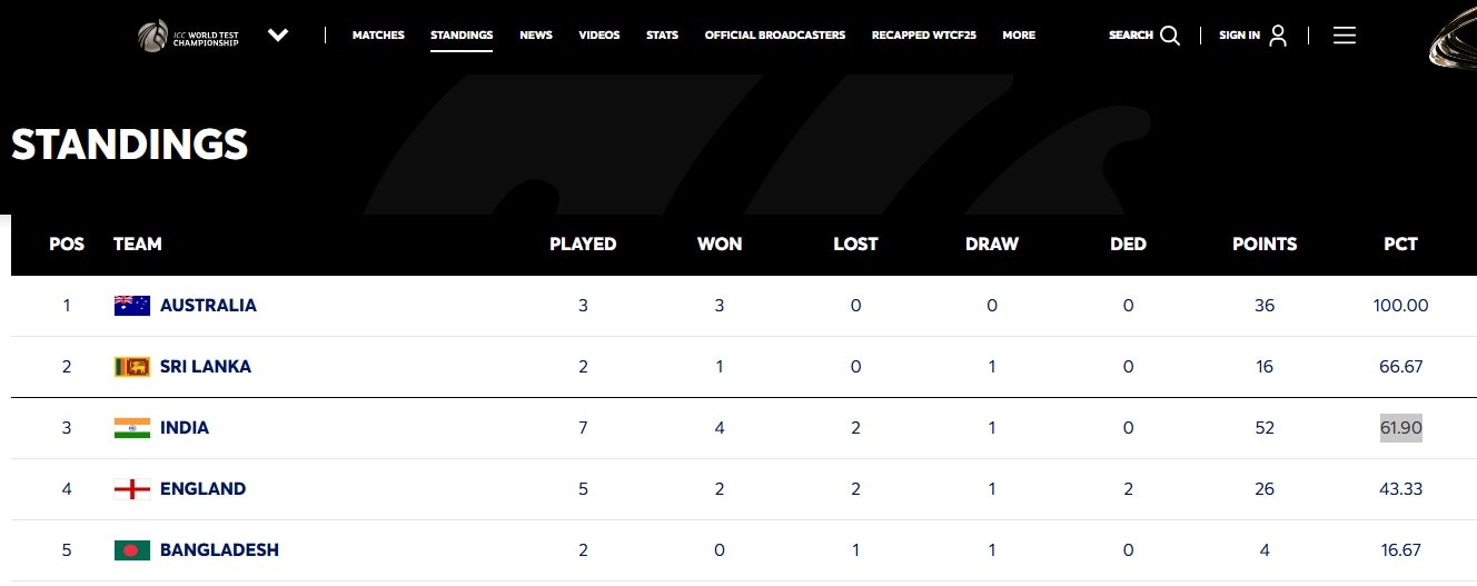 वर्ल्ड टेस्ट चैंपियनशिप टेबल पर नजर डालें तो भारत ने सबसे ज्यादा मैच जीते हैं. टीम इंडिया के खाते में 7 टेस्ट मैच खेलने के बाद 4 जीत दर्ज है जबकि ऑस्ट्रेलिया ने 3 मैच खेलकर 3 जीते हैं. श्रीलंका की टीम ने 2 मुकाबला खेला है जिसमें एक ही जीत हासिल की है. ऐसे में सवाल उठता है कि भारत के पास ज्यादा जीत होने के बाद भी वो अंक तालिका में श्रीलंका के नीचे क्यों है. इसका जवाब है आईसीसी का नियम.